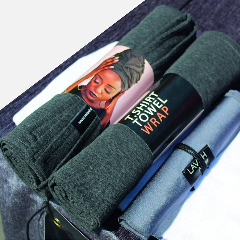 - Lay the T-shirt wrap flat: Use a bed, counter, or any flat surface. Tee-Owels